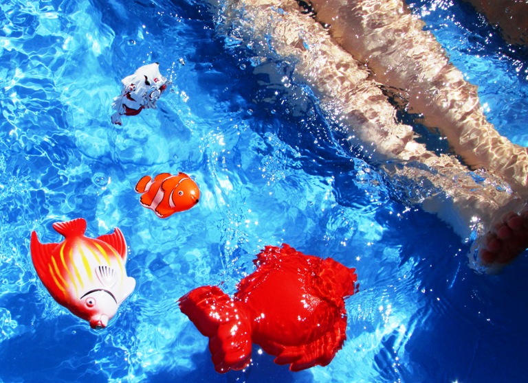 piscina. Não sei bem se tínhamos no jardim, um condomínio com piscina ou uma